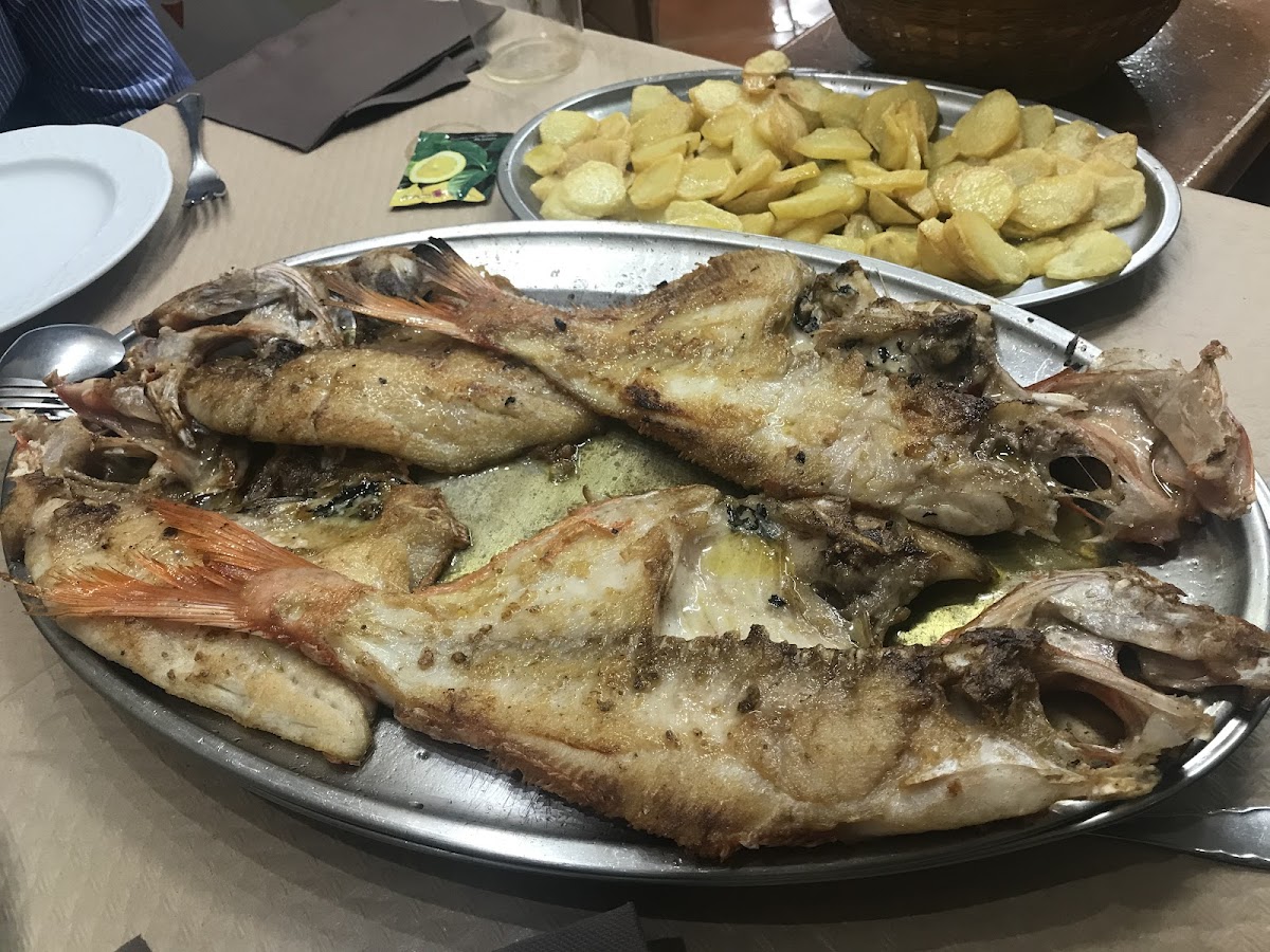 Pedimos una parrillada pequeña de pescados para cuatro para llevar. Muy rica. Lleva también unas gambas.